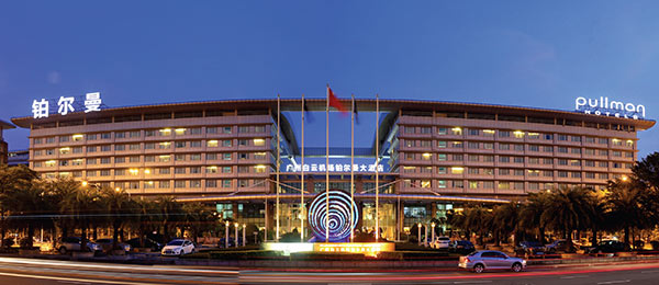 ride journey to city center. The hotel features 578 comfortable guest rooms, 3 unique restaurants and bars. To satisfy guests' different requirements, the 1500-square-meter astylar multi-functional Hongmian Banquet Hall can be divided into three equal ones. The hotel is also equipped with a 460-square-meter Xiehe Hall for banquet and more than 20 multi-functional conference rooms and VIP rooms. With diverse recreational facilities nearby, the hotel features executive lounge, ZOO-square meter fitness facility and 280 parking space. You can fully enjoy the relaxing environment here after the long journey and renew your vitality.