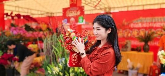 热闹红火的电商直播一条街——“云上花市”是本届花市最大亮点,各档口主播热情洋溢地推介销售精品花卉产品、春节年货等,吸引许多市民驻足挑选;联同京东“穗农优品馆”同步开展年花展销,促进年花销售推广,方便市民指尖上购年花、年货。“花漾花市”有各式各样的便民活动,区书法家及志愿者现场挥春送福,为市民添福添彩;年货街可以精选花都特色年货、手工艺品、春联和灯笼等,满足市民一站式购年货需求。