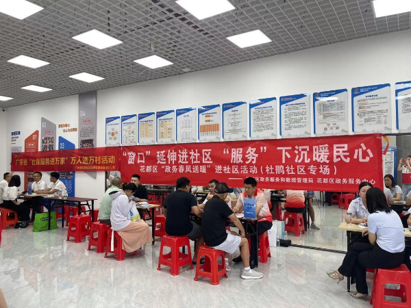 今年初,花都区政务服务和数据管理局在全市率先印发《“政务春风送暖”行动十六条》,以“思想转变+机制优化+科技赋能”为核心,旨在全方位提升花都区政务服务效能,打造透明、高效、便捷的政务服务环境。随后,区政务服务和数据管理局联合公安、税务、不动产、医保、社保等部门深入开展政务服务进园区、进企业、进校园、进社区“四进”行动,主动将便民服务送上门,将固定窗口变成移动窗口。企业和群众在“家门口”即可办理养老保险、身份证补办、驾驶证换证等政务服务。