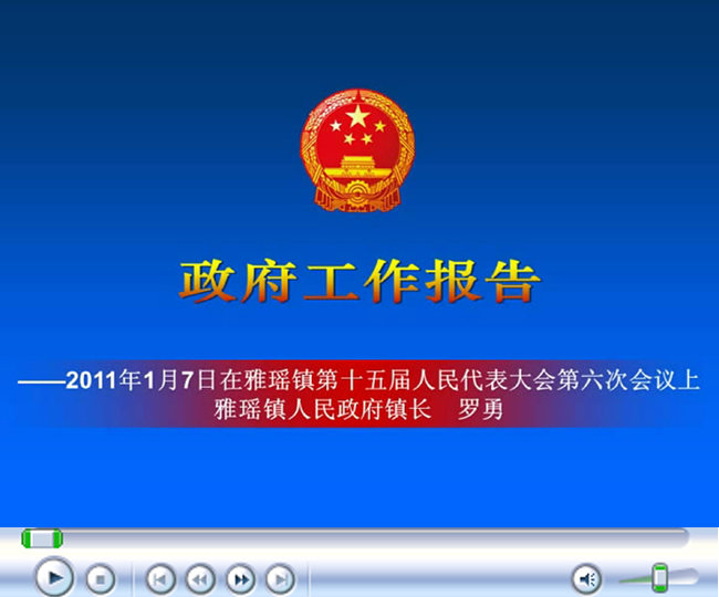 现在,我代表成人动漫 雅瑶镇人民政府,向大会作政府工作报告,请予审议,并请列席人员提出意见。