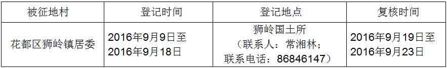 (二)本次征收土地所涉及的被安置农业人员由各被征地村村以货币补偿的形式安置。请各被征地村在本公告期内到花都区国土房管分局领取办理安置农业人口征地农转非手续的函件。