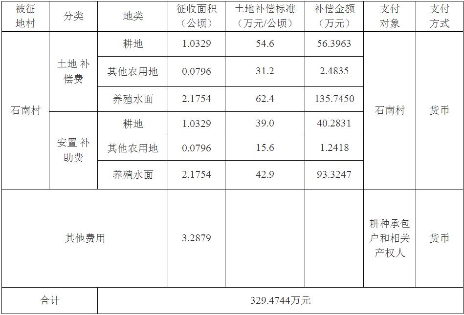 四、征地补偿安置方案: