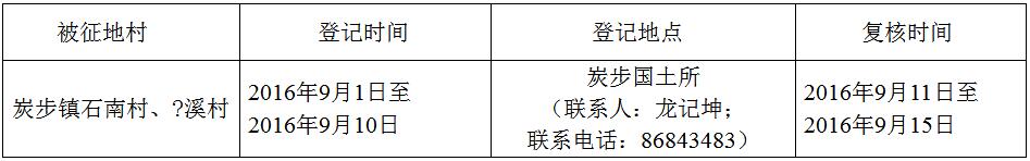 经省人民政府批准(粤国土资(建)字〔2016〕241号文),需将成人动漫 炭步镇石南村、?溪村属下的集体土地3.2885公顷(合49.3275亩)征收为国有土地。现将经依法批准的《征收土地方案》和市人民政府批准的《征地补偿安置方案》内容以及有关事项公告如下: