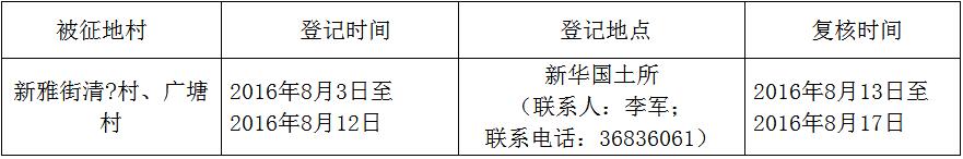 五、被征收土地四至范围内的土地所有权人、使用权人在本公告规定的期限内,持土地权属证书或其他有关证明材料,到指定的地点办理征地补偿登记,请互相转告。