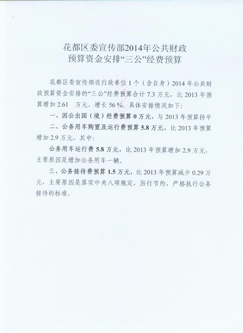 花都区委宣传部2014年公共财政预算资金安排“三公”经费预算
