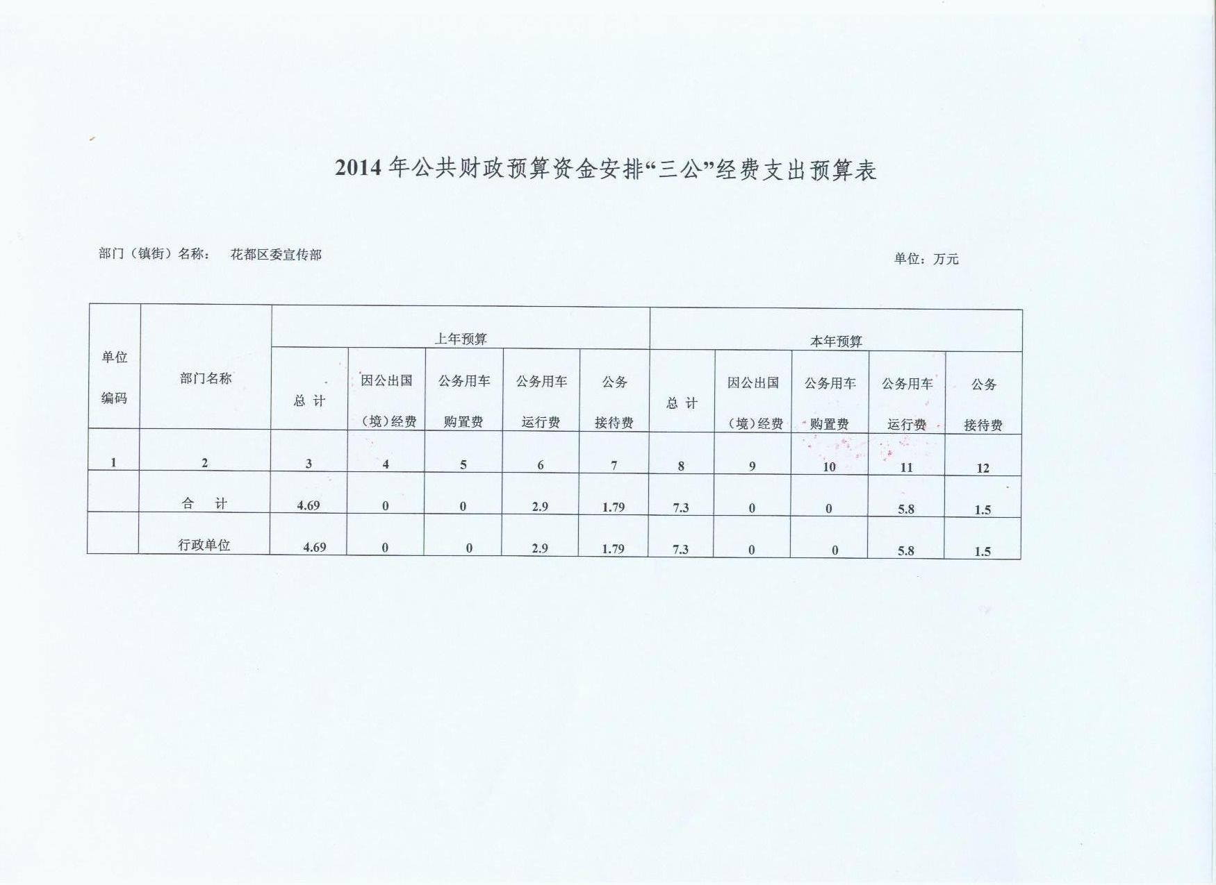 花都区委宣传部2014年公共财政预算资金安排“三公”经费预算表