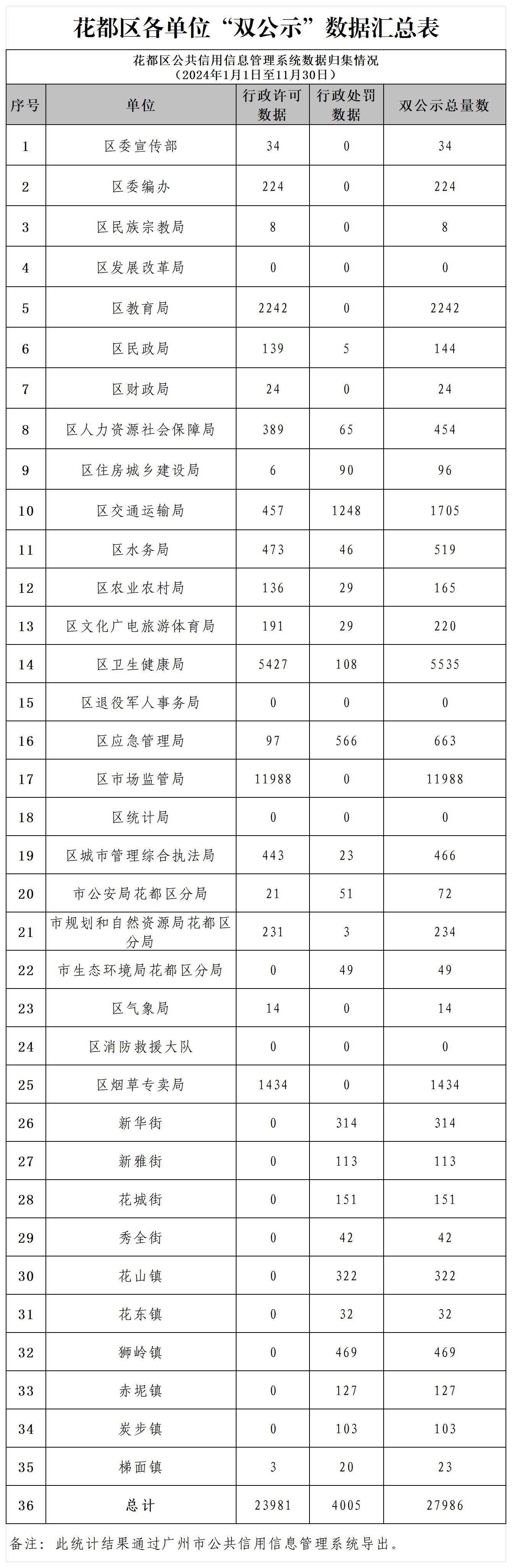 信用信息双公示_花都区2024年11月各单位“双公示”数据汇总表