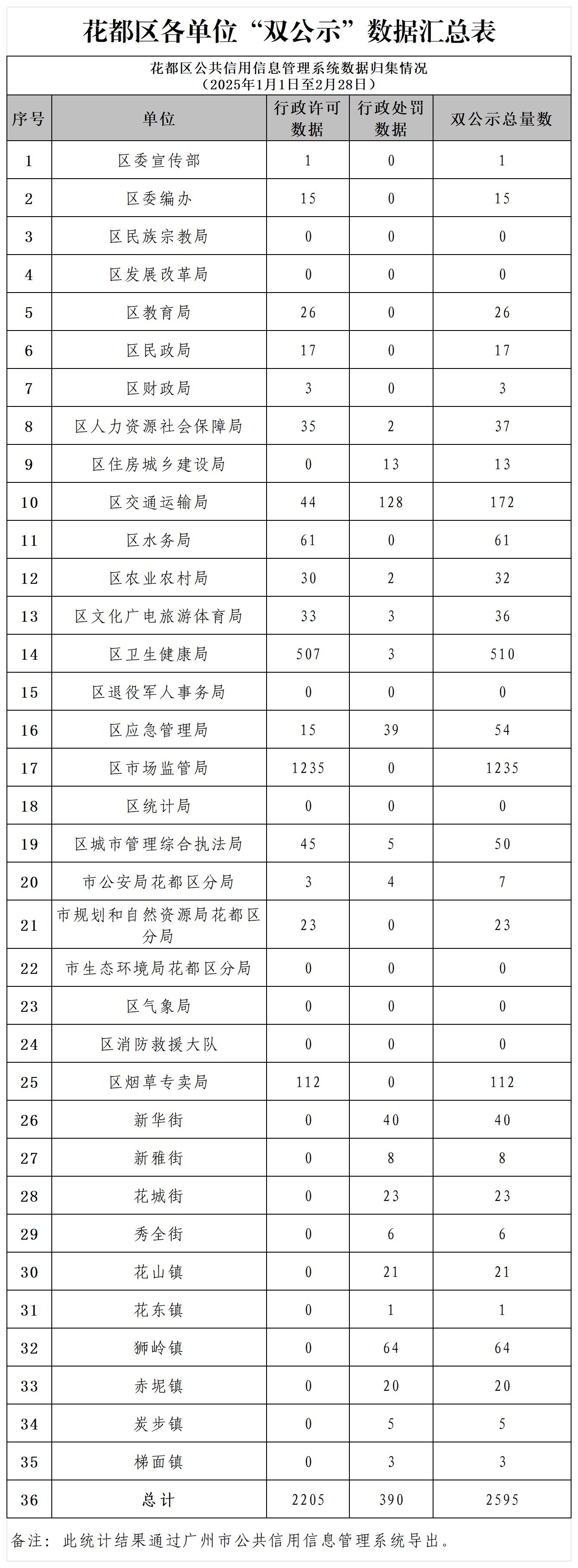 信用信息双公示_花都区2025年2月各单位“双公示”数据汇总表