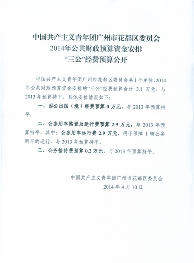 中国共产主义青年团成人动漫 委员会2014年“三公”经费预算
