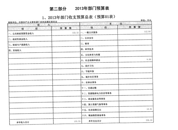 花都区中国共产主义青年团成人动漫 委员会2013年部门预算