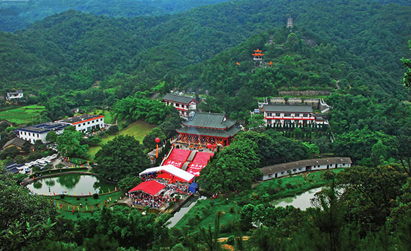 紫霞山荘は梯面鎮の東北部に位置し、群山から囲まれて、周辺には滝、渓流で取り囲まれて、心性を修行する良い行き先になっている。紫霞山荘について、現地の方から大昔、紫霞山荘の大雄宝殿前に「仙人橋」があり、この「橋」とは元々仙人からガジュマルの根で建造されたものだったとの伝説が伝わっている。