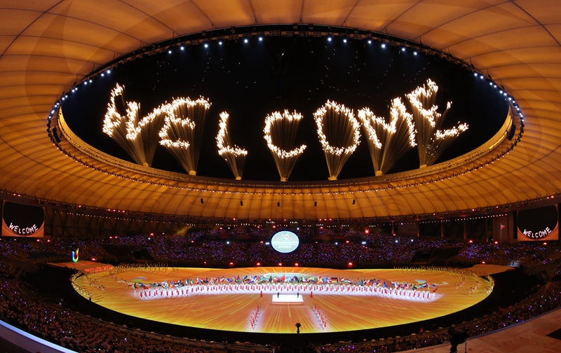 这是2023年7月28日拍摄的第31届世界大学生夏季运动会开幕式焰火。