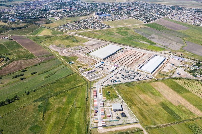 这是2019年5月21日在塔吉克斯坦丹加拉拍摄的中泰纺织厂(无人机照片)。