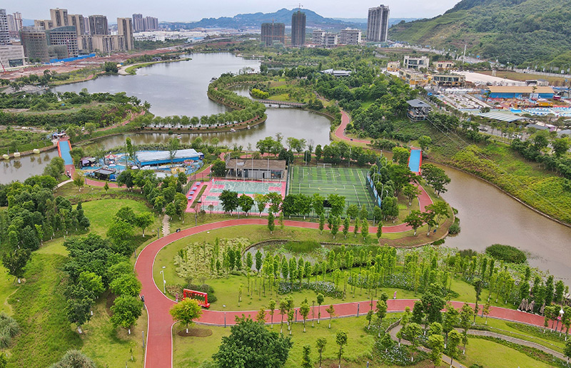 2023年6月1日拍摄的四川泸州渔子溪湿地公园(无人机照片)。泸州高新区渔子溪湿地公园的“前身”是三道河、新河沟和大桥河沟,三条支流汇聚于渔子溪湖汇入长江。原流域内生态环境差,污染严重,垃圾随处可见,是典型的城郊“臭水沟”。经过治理,渔子溪湖水质得到根本性改良,部分区域指标达到Ⅰ、Ⅱ类水标准。同时,治理后的渔子溪湖减少了水土流失,降低了直排长江的泥沙含量,达到节约水资源、水土保持和修复生态的目的。“臭水沟”蝶变成为“网红打卡地”。