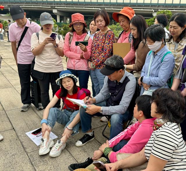 不远处,声乐老师王燕凤带着学生们在林间花下练习声乐和合唱。今年72岁的李阿姨是学校的新学员,刚刚开始学习摄影就报名了这次课程,在谢敏华、谭敏智两位摄影老师的指导下,她高兴地说,“摄影这门课程的学问很深奥,能从校园内走出户外拍摄实景是一个很好的练习机会。”