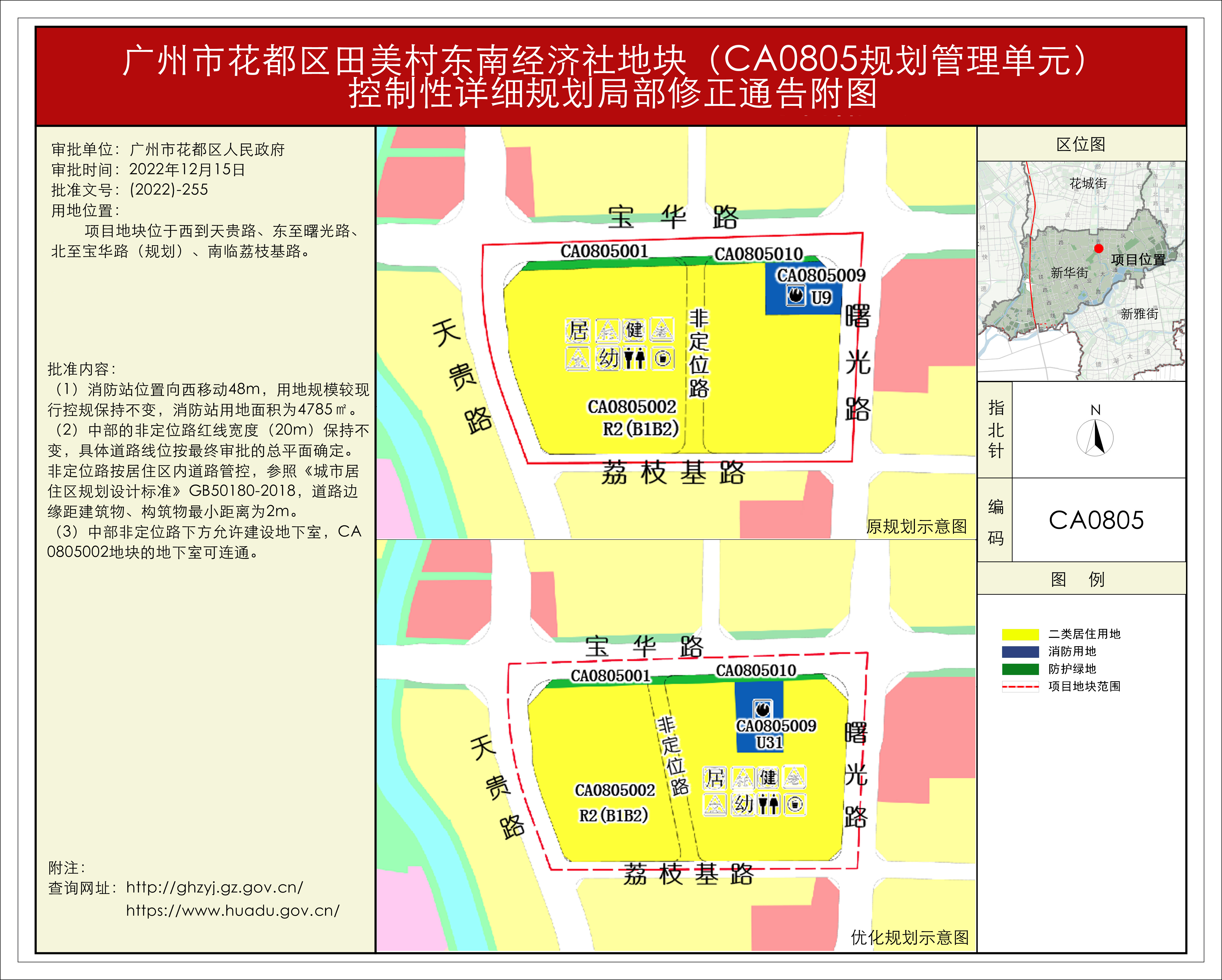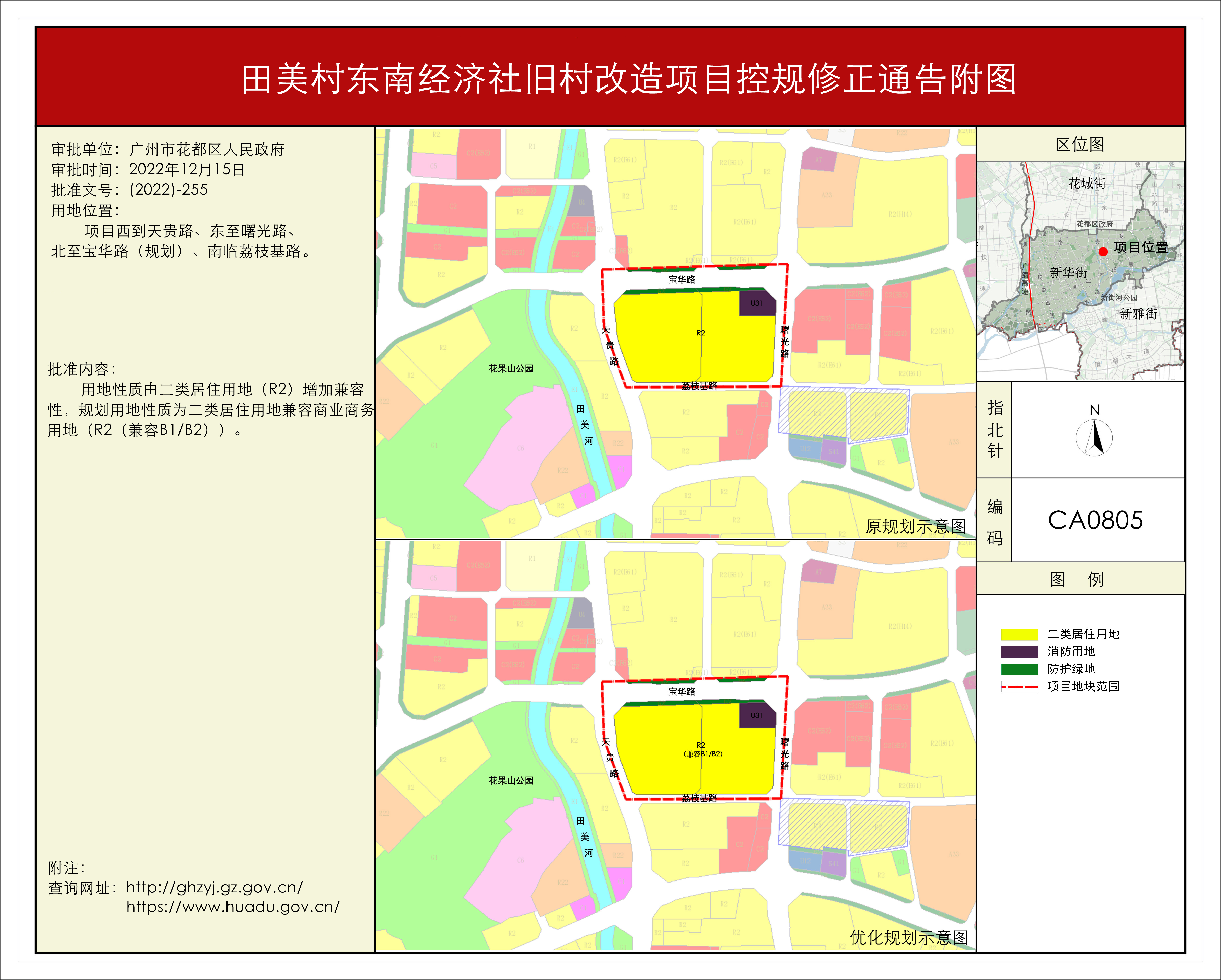 广州市规划和自然资源局花都区分局关于公布实施《田美村东南经济社旧村改造项目、横潭河西经济社旧村改造项目控规修正》等62项规划成果的通告