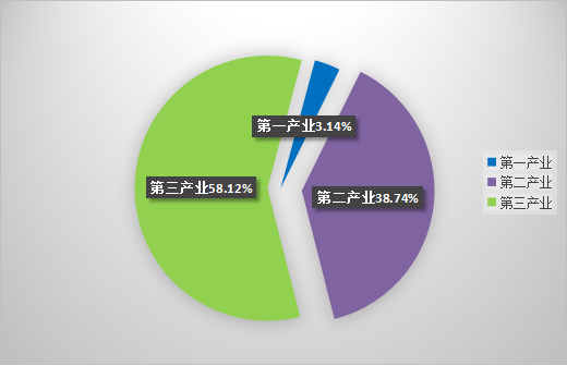 根据广州市地区生产总值统一核算结果,2023年全区实现生产总值1801.51亿元,同比增长2.1%。其中,第一产业增加值56.59亿元,同比增长10.1%;第二产业增加值697.85亿元,同比下降3.6%;第三产业增加值1047.07亿元,同比增长5.9%。三次产业结构占比为3.14:38.74:58.12。第一、第二、三产业对经济增长的拉动作用分别为0.3、-1.5和3.3个百分点。