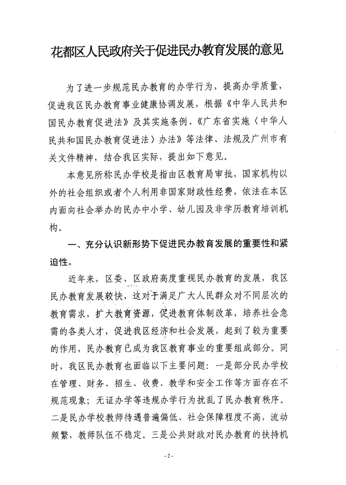 印发《花都区人民政府关于促进民办教育发展的意见》的通知 【花府[2011]16号】