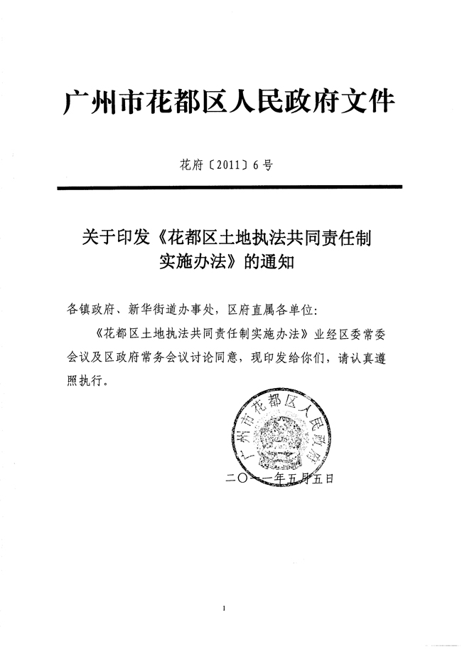 关于印发《花都区土地执法共同责任制实施办法》的通知 【花府[2011]6号】
