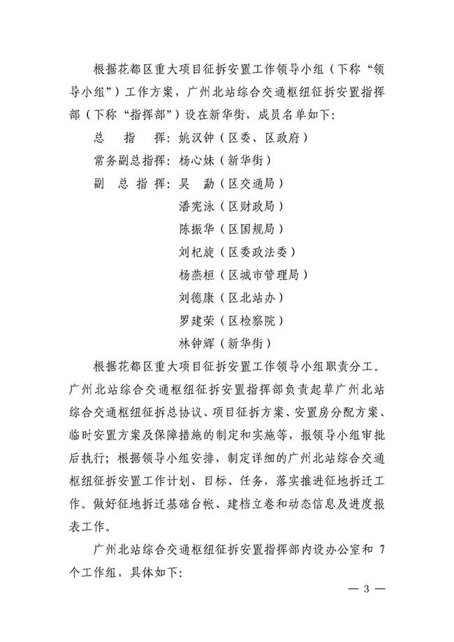 成人动漫 办公室关于印发广州北站综合交通枢纽征地拆迁安置指挥部工作方案的通知【花府办〔2017〕8号】