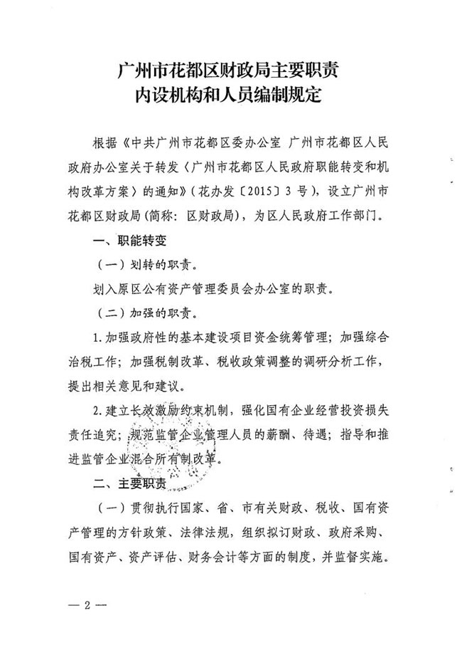 成人动漫 办公室关于印发成人动漫 财政局主要职责内设机构和人员编制规定的通知【花府办[2016]3号】