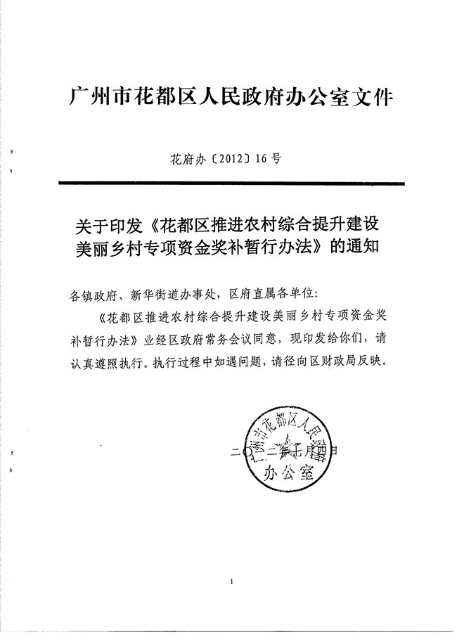 关于印发《花都区推进农村综合提升建设美丽乡村专项资金奖补暂行办法》的通知 【花府办[2012]16号】
