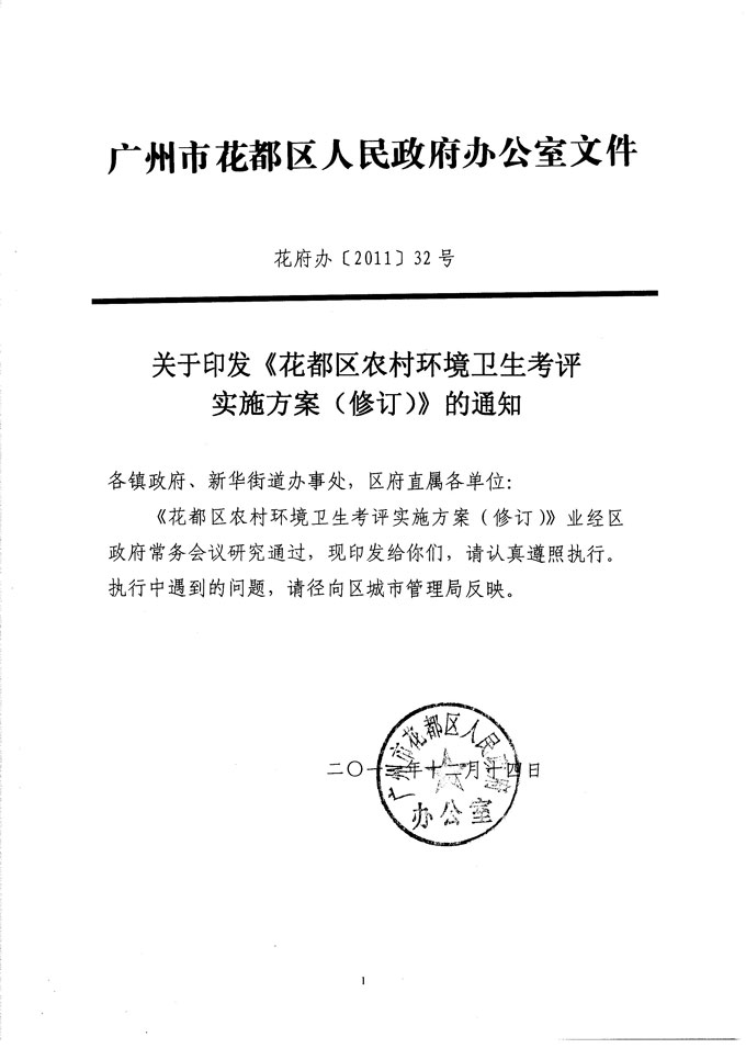 关于印发《花都区农村环境卫生考评实施方案(修订)》的通知 【花府办[2011]32号】