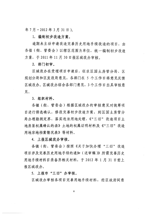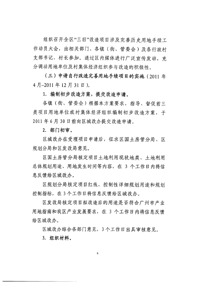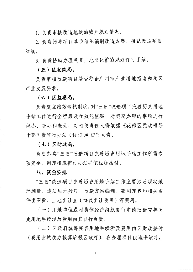 关于印发《花都区“三旧”改造项目涉及完善历史用地手续工作方案》的通知 【花府办[2011]7号】