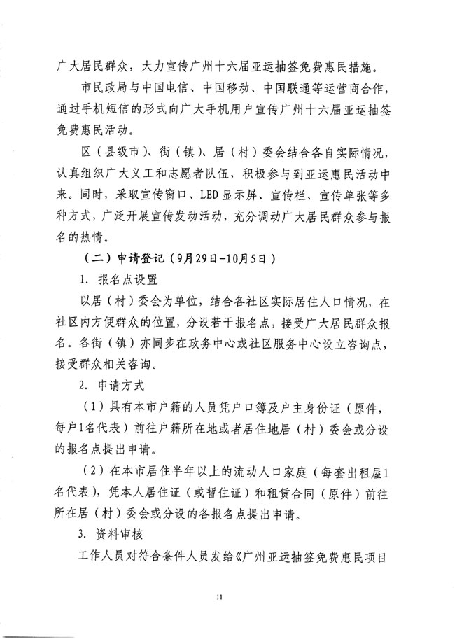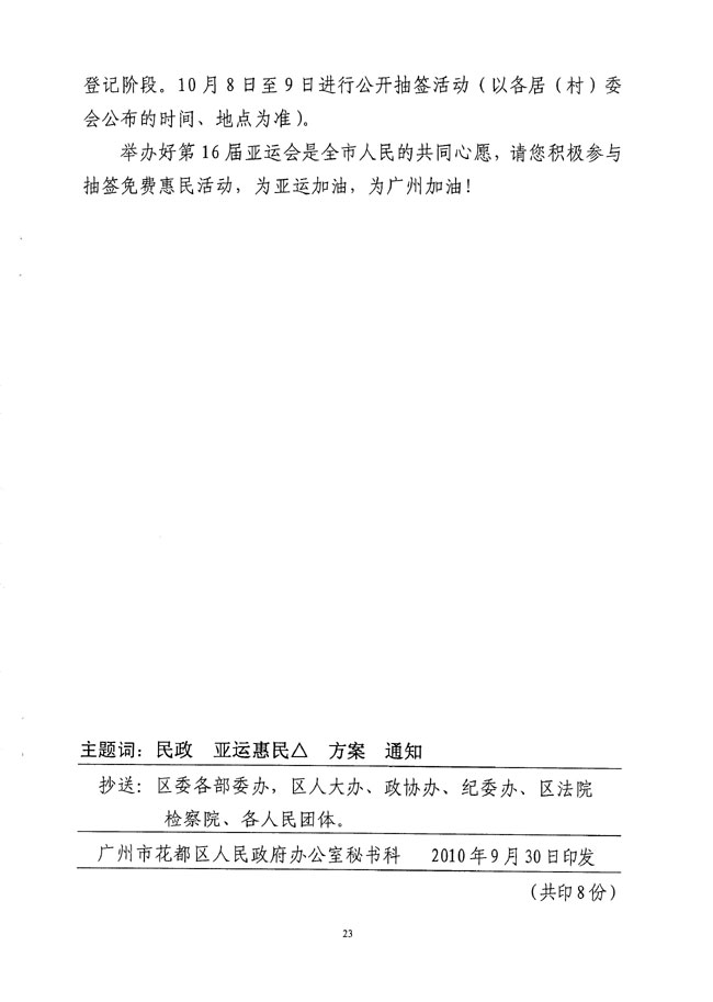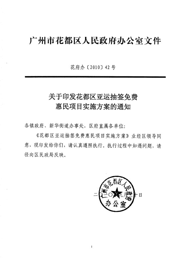关于印发花都区亚运抽签免费惠民项目实施方案的通知 【花府办[2010]42号】