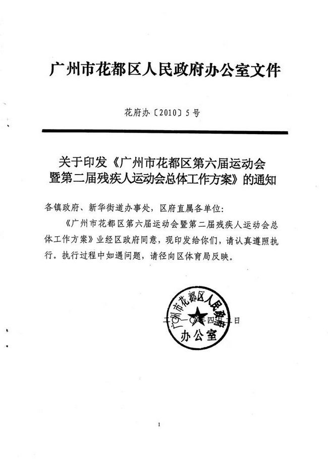 关于印发《成人动漫 第六届运动会暨第二届残疾人运动会总体工作方案》的通知 【花府办[2010]5号】