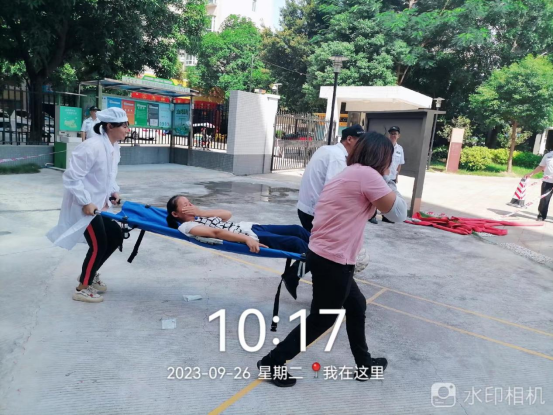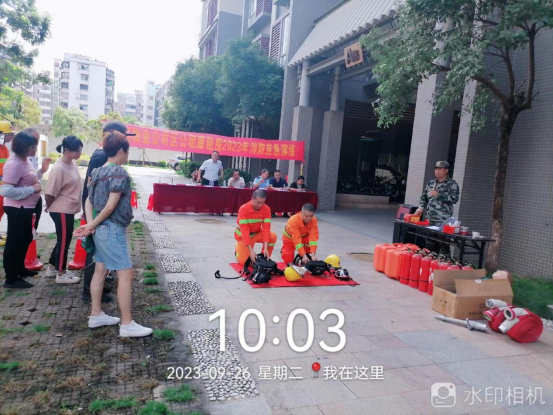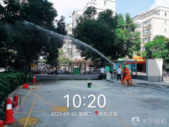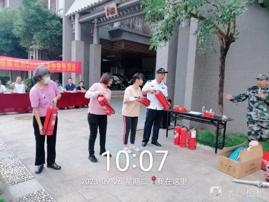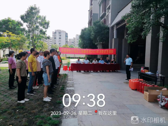 为加强公租房小区物业工作人员及租户的消防安全工作,增强消防安全意识,进一步培养小区物业工作人员及租户在突发性灾害发生时,掌握有关防火逃生知识技能。于2023年9月26日上午,由公租房小区物业公司联合区住建局、新都西居委、辖区民警在公租房小区进行消防器材使用及逃生应急演练。