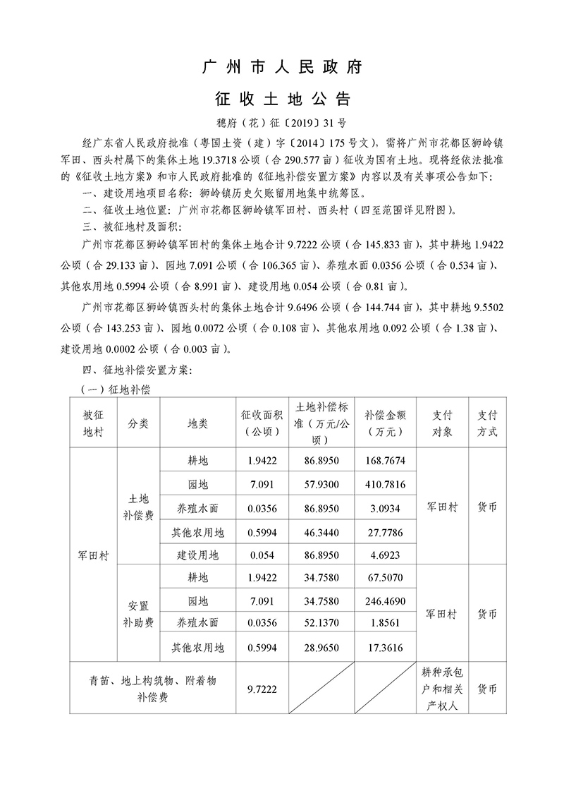 广州市人民政府征收土地公告--穗府(花)征〔2019〕31号
