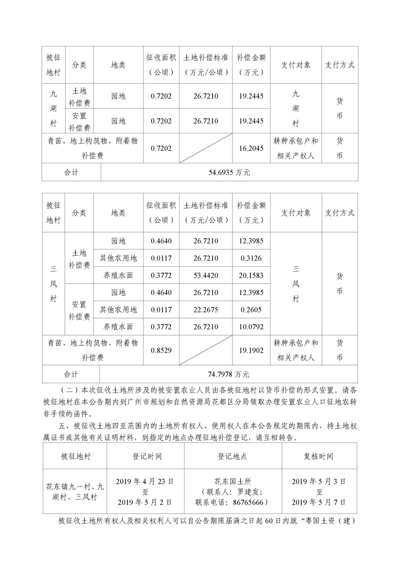 广州市人民政府征收土地公告--穗府(花)征〔2019〕12号
