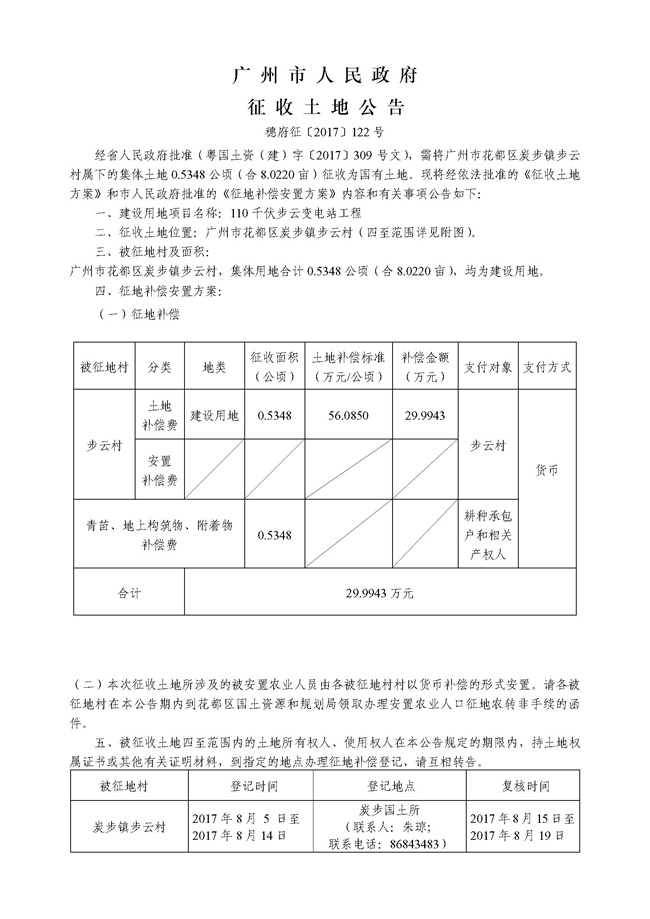 广州市人民政府征收土地公告——穗府征[2017]116号