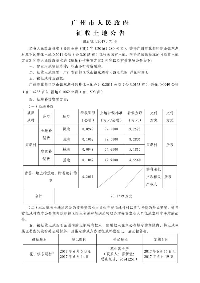 征地公告信息_广州市人民政府征收土地公告——穗府征〔2017〕71号
