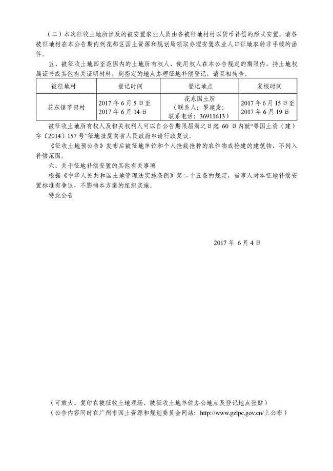 征地公告信息_广州市人民政府征收土地公告——穗府征〔2017〕55号