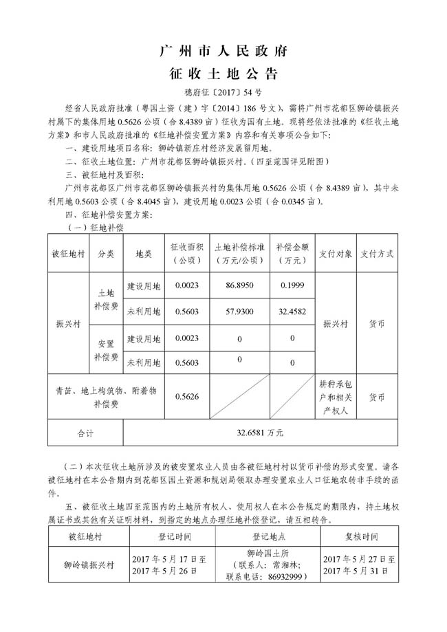 征地公告信息_广州市人民政府征收土地公告——穗府征〔2017〕54号