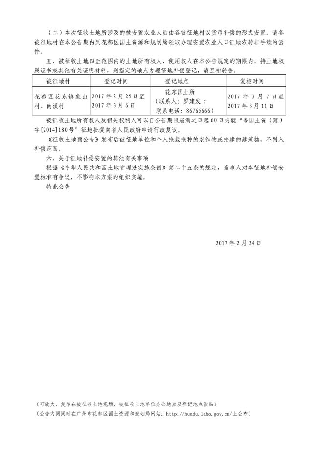 征地公告信息_广州市人民政府征收土地公告——穗府征〔2017〕15号