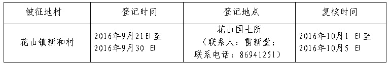 经省人民政府批准(粤国土资(建)字〔2016〕426号文),需将成人动漫 花山镇新和村属下的集体土地13.9904公顷(合209.8560亩)征收为国有土地。现将经依法批准的《征收土地方案》和市人民政府批准的《征地补偿安置方案》内容和有关事项公告如下:
