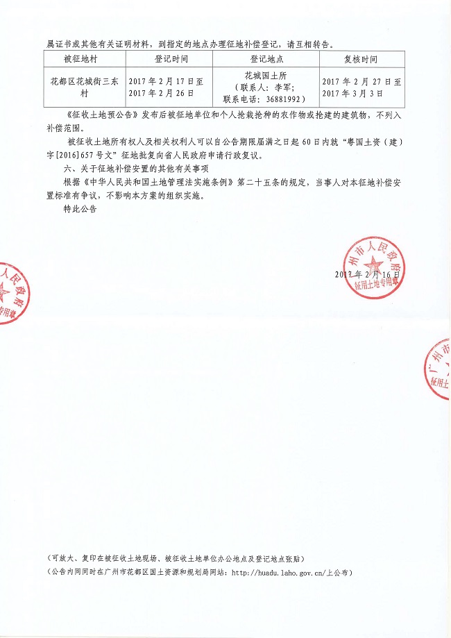 征地公告信息_广州市人民政府征收土地公告——穗府征〔2017〕9号