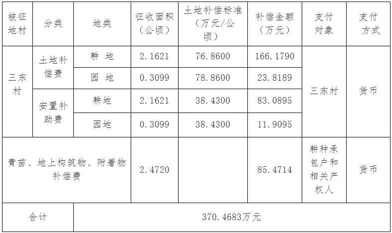 经国务院批准(国土资函[2015]571号文),需将成人动漫 花城街三东村属下的集体土地2.472公顷(合37.08亩)征收为国有土地。现将经依法批准的《征收土地方案》和市人民政府批准的《征地补偿安置方案》内容和有关事项公告如下: