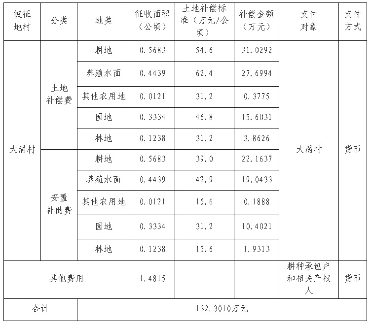 四、征地补偿安置方案: