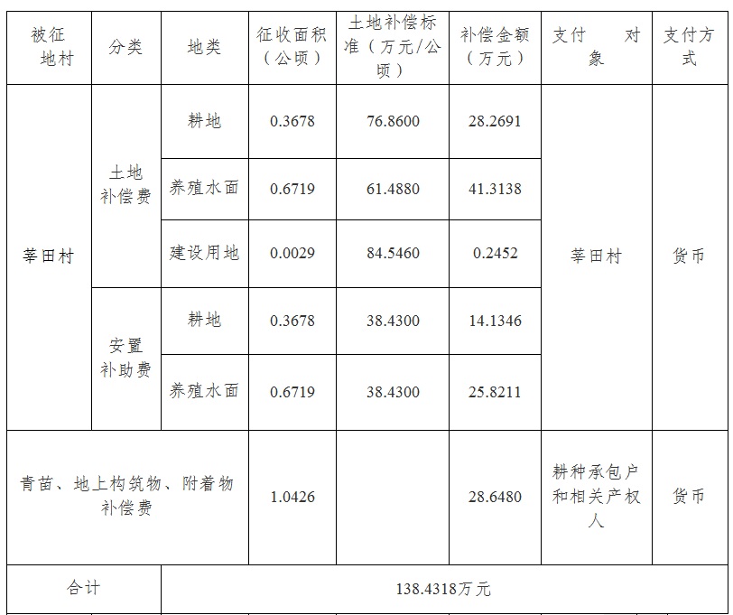 经省人民政府批准(粤国土资(建)字〔2015〕1013号文),需将成人动漫 花东镇莘田村、水口营村属下的集体土地1.5907公顷(合23.8605亩)征收为国有土地。现将经依法批准的《征收土地方案》和市人民政府批准的《征地补偿安置方案》内容以及有关事项公告如下: