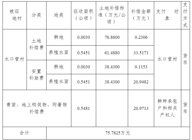四、征地补偿安置方案: