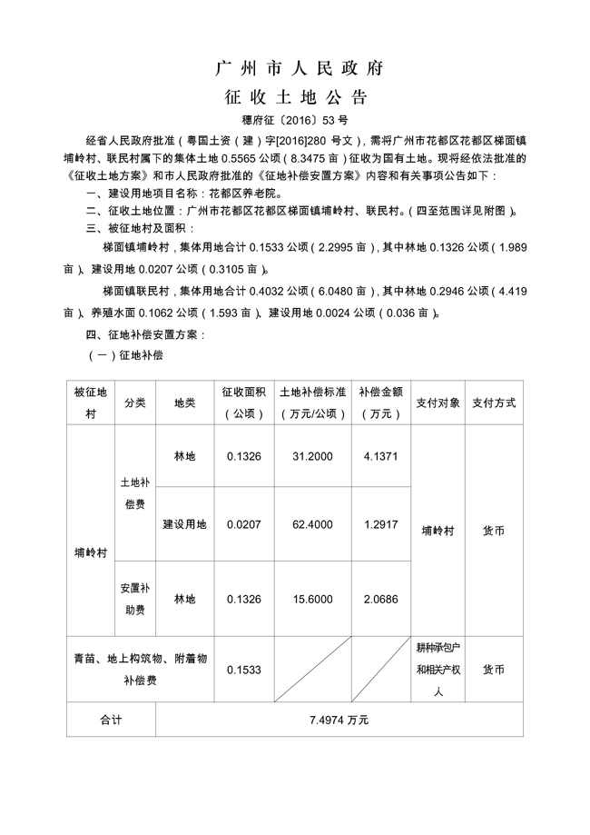 征地公告信息_广州市人民政府征收土地公告——穗府征〔2016〕53号