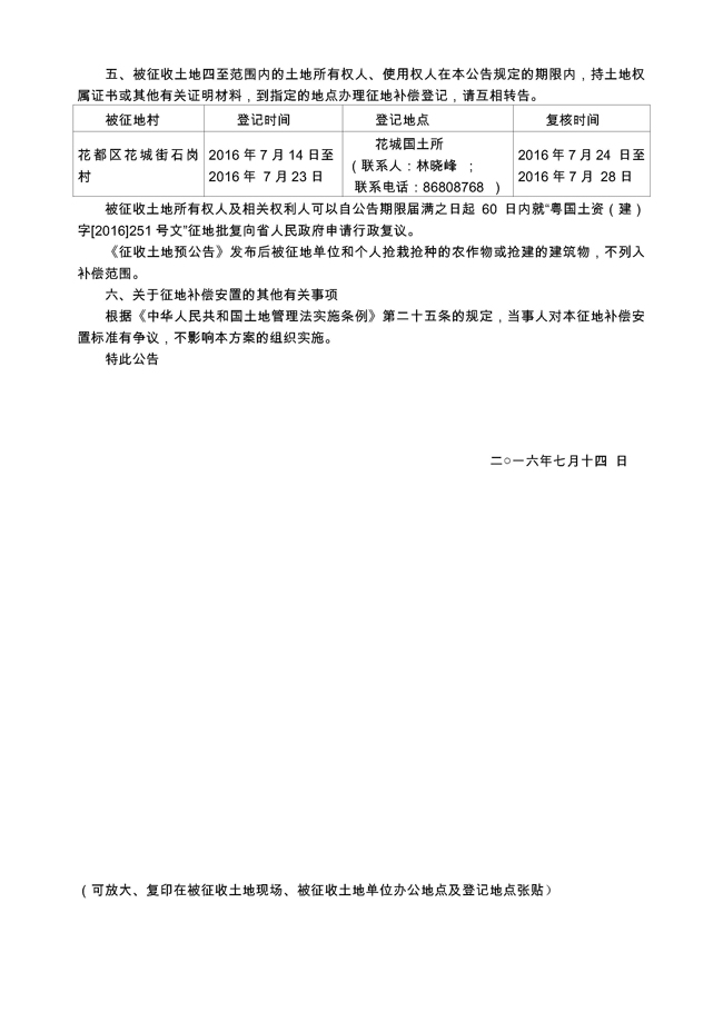 征地公告信息_广州市人民政府征收土地公告——穗府征〔2016〕51号