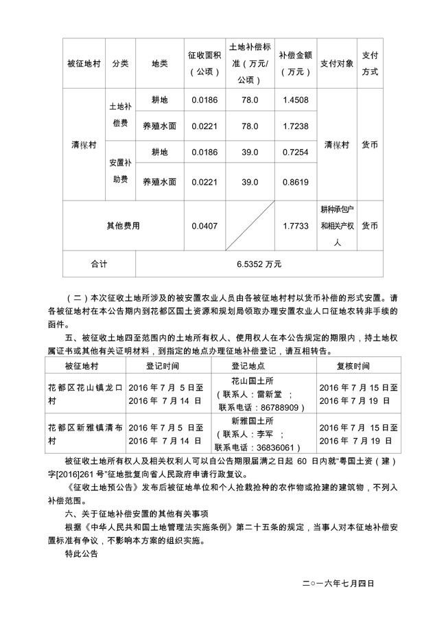 征地公告信息_广州市人民政府征收土地公告——穗府征〔2016〕46号