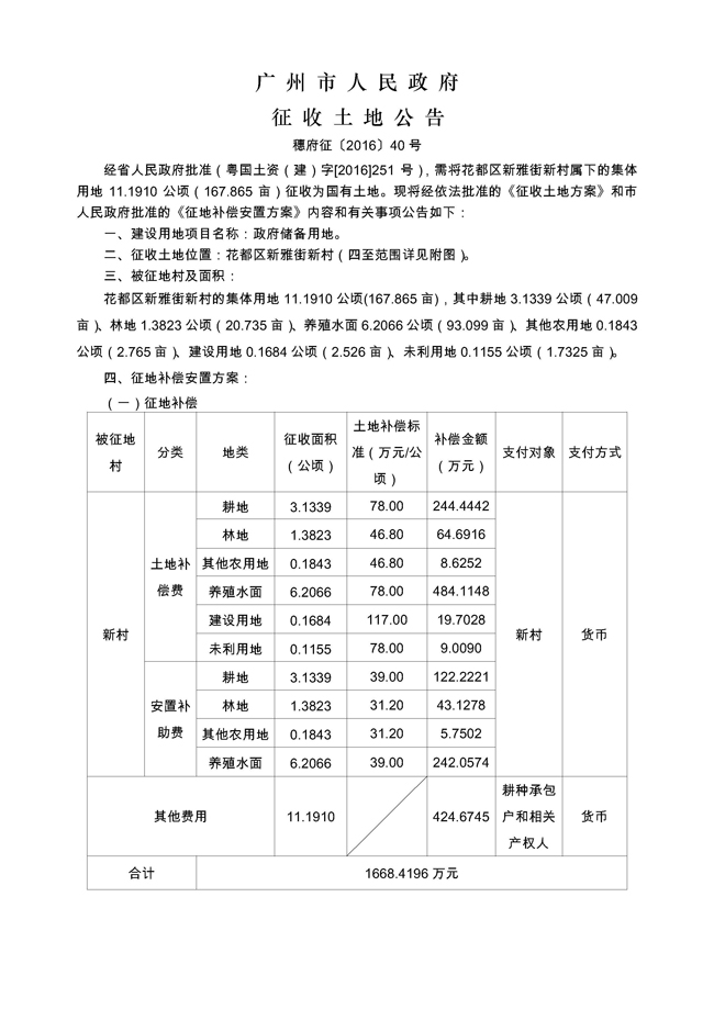 征地公告信息_广州市人民政府征收土地公告——穗府征〔2016〕40号