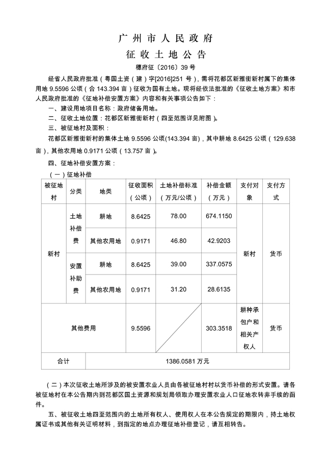 征地公告信息_广州市人民政府征收土地公告——穗府征〔2016〕39号