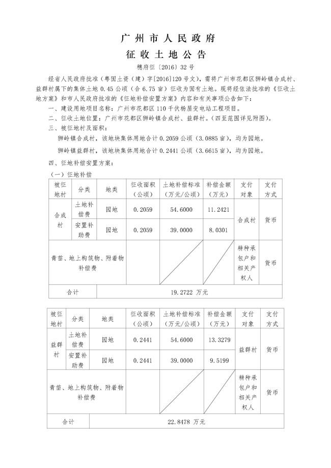 广州市人民政府征收土地公告——穗府征〔2016〕32号